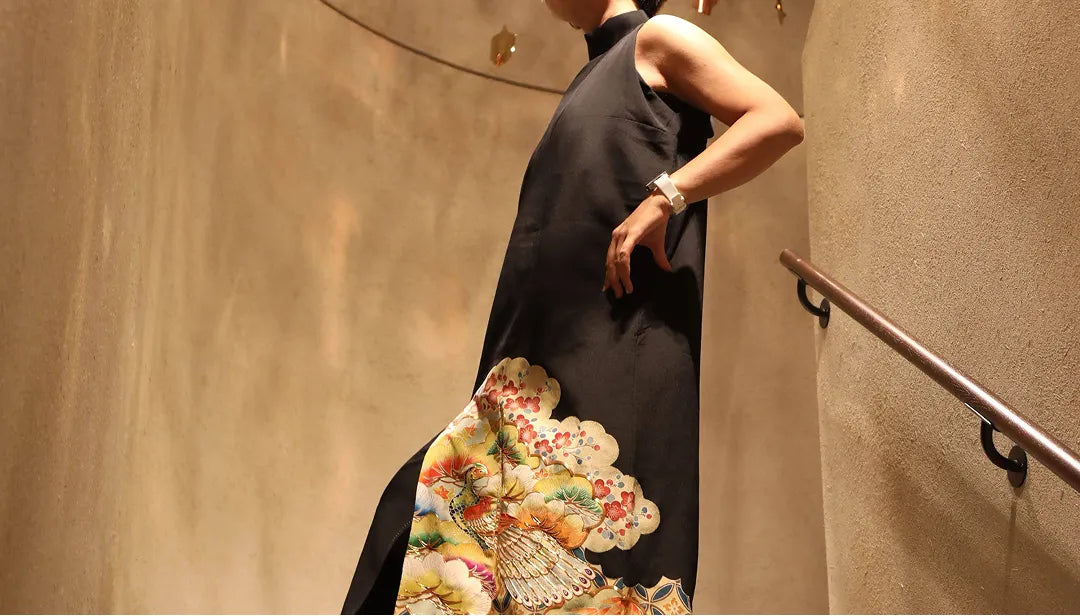 役目を終えたヴィンテージ着物に新しい命を吹き込み、現代のファッションとして蘇らせるサステナブルな制作を実践しています。